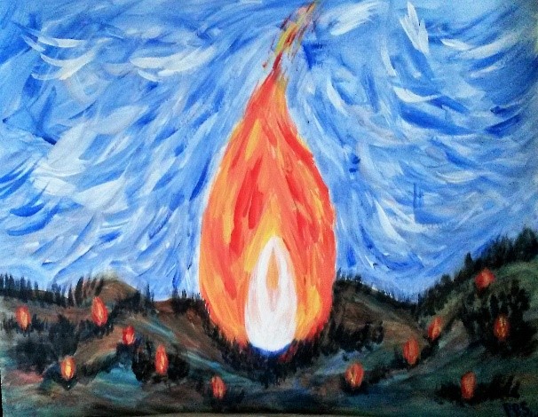 “The Vision of God for the OFS” – an image inspired by the Holy Spirit, painted by Pat Serotkin OFS at the recent Formation Visioning Workshop