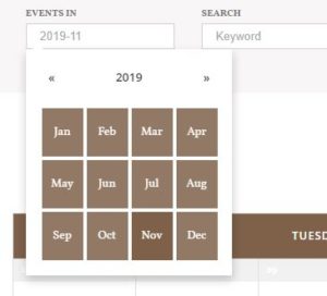 Or … you can go back to the top of the calendar and use the “EVENTS IN” box to get to another month and even in another year.