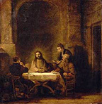 To me it makes perfect sense that Mary and Cleopas would be returning to their home in Emmaus, “conversing about all the things that had occurred” (Luke 24:15) as would any husband and wife. When our Lord appears with them, Cleopas as the man does most of the talking, but when this lonely Traveler appears to be “going on farther” (verse 28), “they urged him, ‘Stay with us, for it is nearly evening and the day is almost over'” (verse 29). It sounds like an invitation to stay at one’s home, and with whom would Cleopas be living if not with his wife? So, both husband and wife, Cleopas and Mary, invite Jesus to dine in their home as a member of the family. And almost certainly, it is Mary who prepares the meal and bakes the bread that Jesus will bless, break and give them so that they will finally recognize him. It was her baked bread!