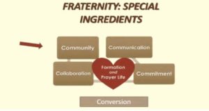 - create a School of sanctity — “Fraternity can promote in its members full development of the interior life: an intense liturgical life, sacramental and charitable life through practices such as fraternity prayer, Mass, Liturgy of the Hours, retreats and days of recollection.”
