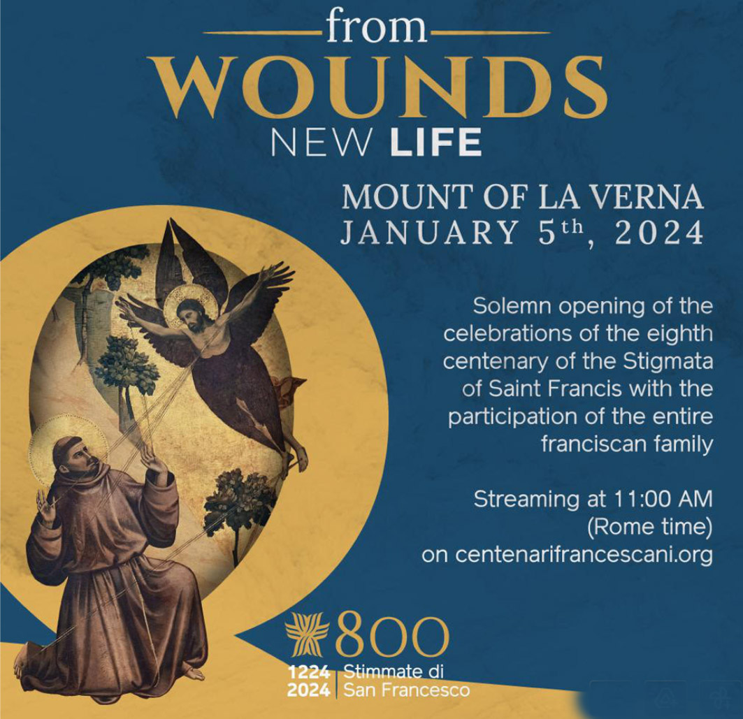 The solemn opening ceremony of the 800th anniversary celebration of the Stigmata of St. Francis of Assisi will be broadcast online Friday, Jan. 5.