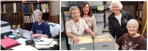 St. Bonaventure University has graciously allowed us to store our files, along with theirs, in the basement of one of their buildings in Olean, New York. Each June since Sharon was appointed Archivist, she and her friend Teri Doughty, OFS, visit St. Bonaventure (by car. . . from Wisconsin!)  to organize and sort the many documents of the OFS-USA kept since the early 1900’s. They have now completed boxing up and filing 247 boxes of paper documents into mold-proof folders and transfer boxes. Every document is scanned and numbered on a hard drive for easy access. Miscellaneous items collected over the years are still to be researched and labeled.