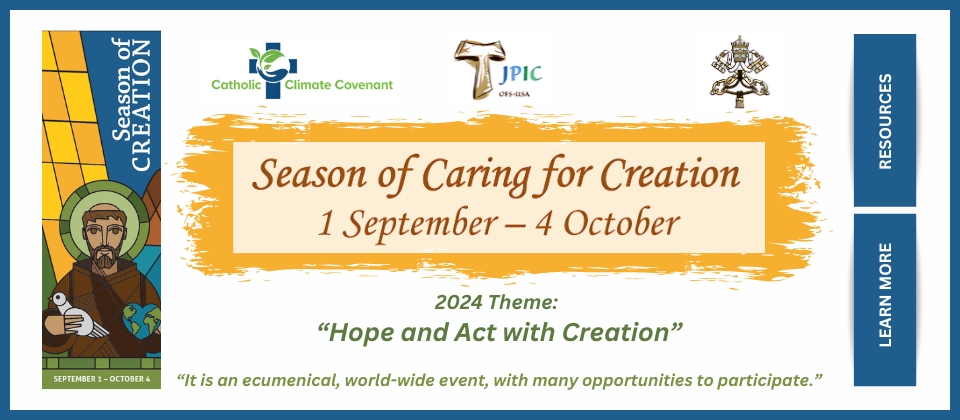 This image announces the Season of Caring for Creation. It asks viewers to click on it to find additional resources